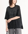 大きめのロゴがポイントになった、レイヤードを楽しめるメッシュニット。両脇スリット入りで抜け感を演出します。