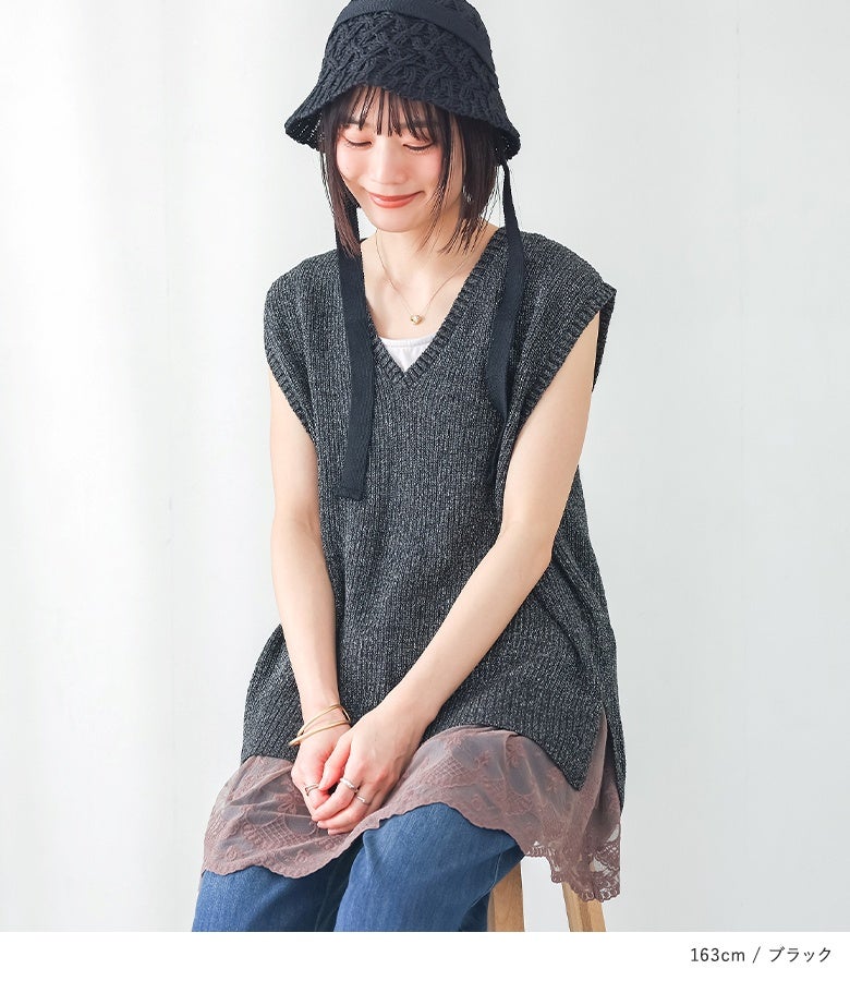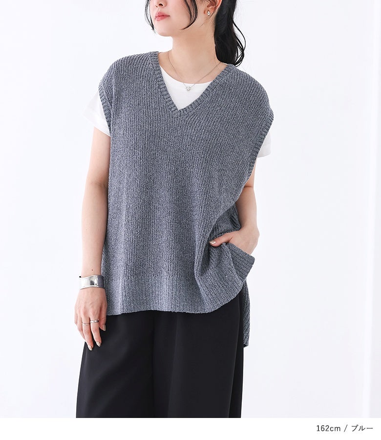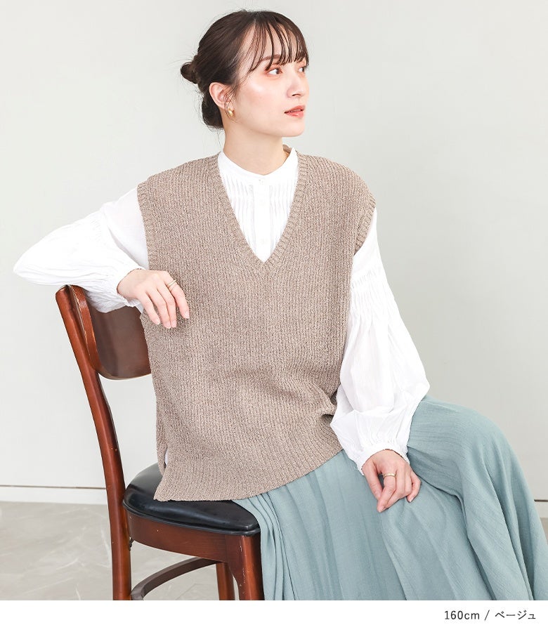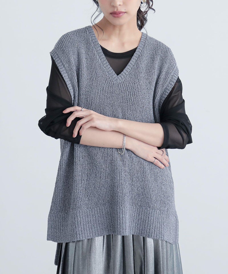 【40%OFF】一枚プラスするだけで重ね着上手な私に、涼し気なミックスヤーンニットベスト。