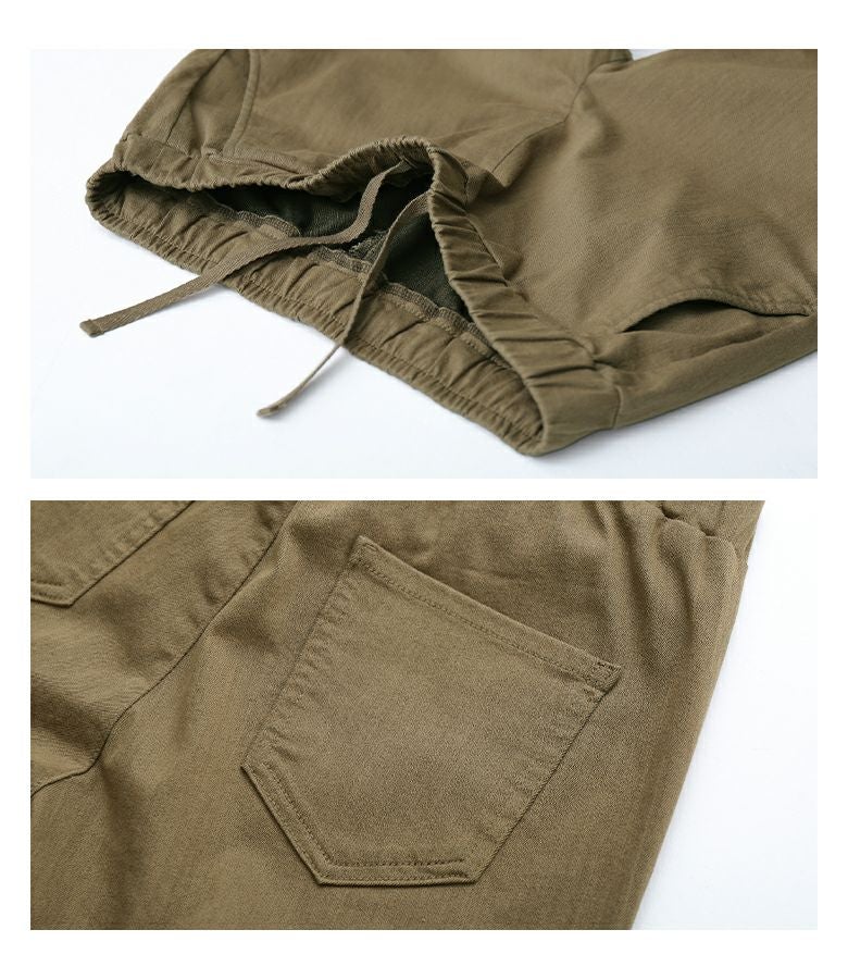 程良い厚みのツイル生地を使用。接触冷感のひんやり素材で暑い季節に活躍する一枚。遮熱糸を使用し、一般的な生地よりも熱を伝えにくい遮熱効果で生地と肌の間の温度上昇を抑えます。紫外線を軽減するUVカット加工入り。ストレッチの効いた生地で快適な穿き心地です。