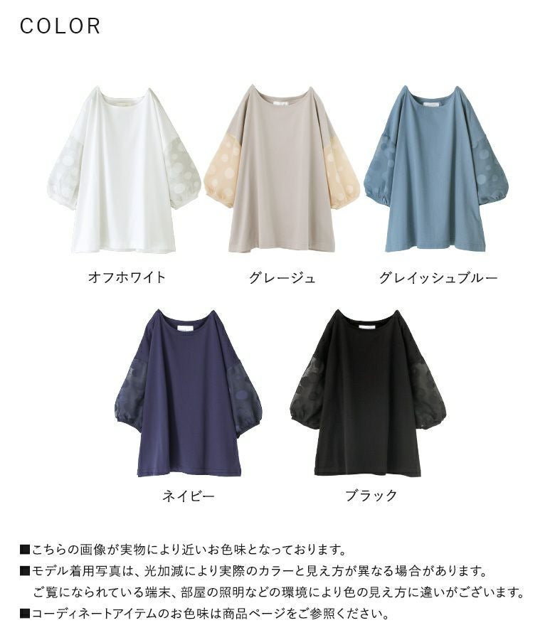 ドット柄の袖は可愛いのですが白はかなり薄く、Tシャツの袖が中途半端で外からハッキリ見えてガッカリしました 白にするんじゃなかった…😭