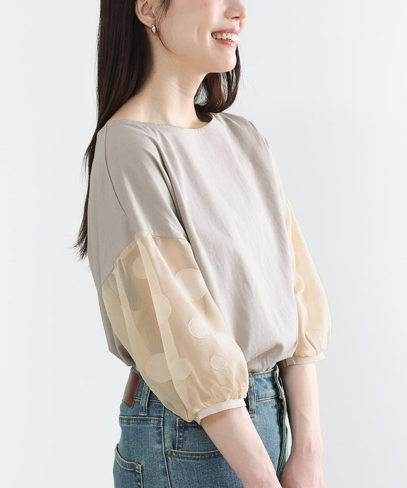 ≪n'OrLABEL≫ドット柄シアー袖カットソーです。