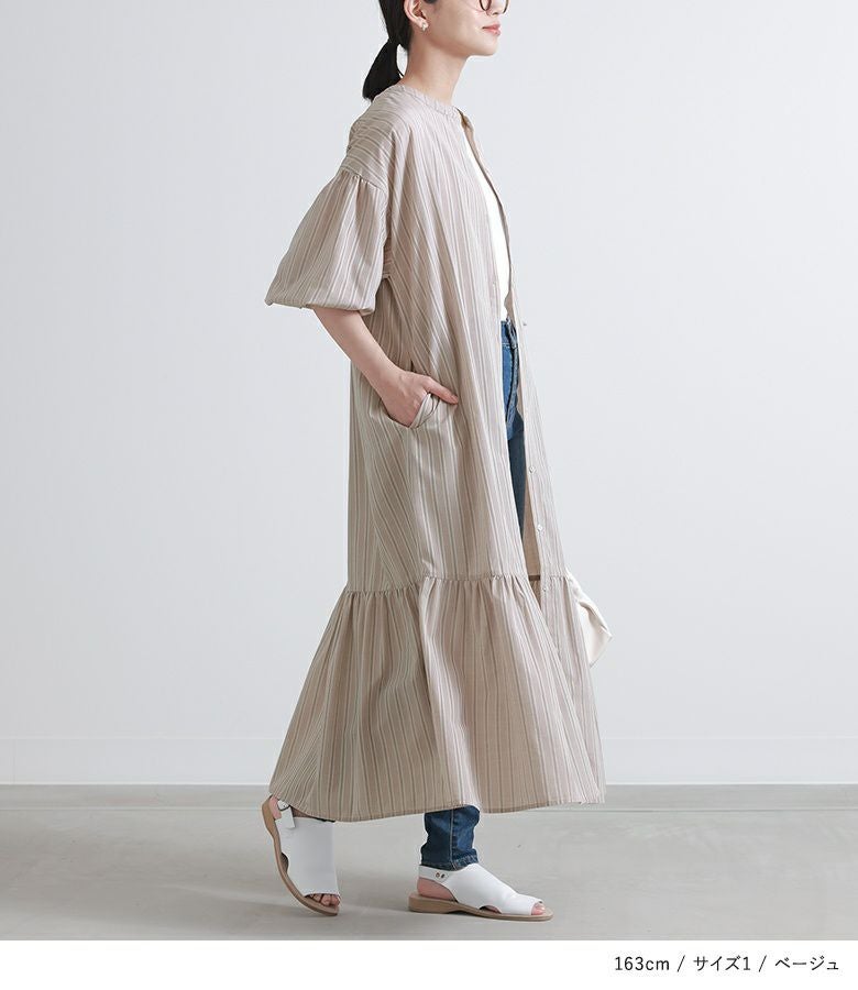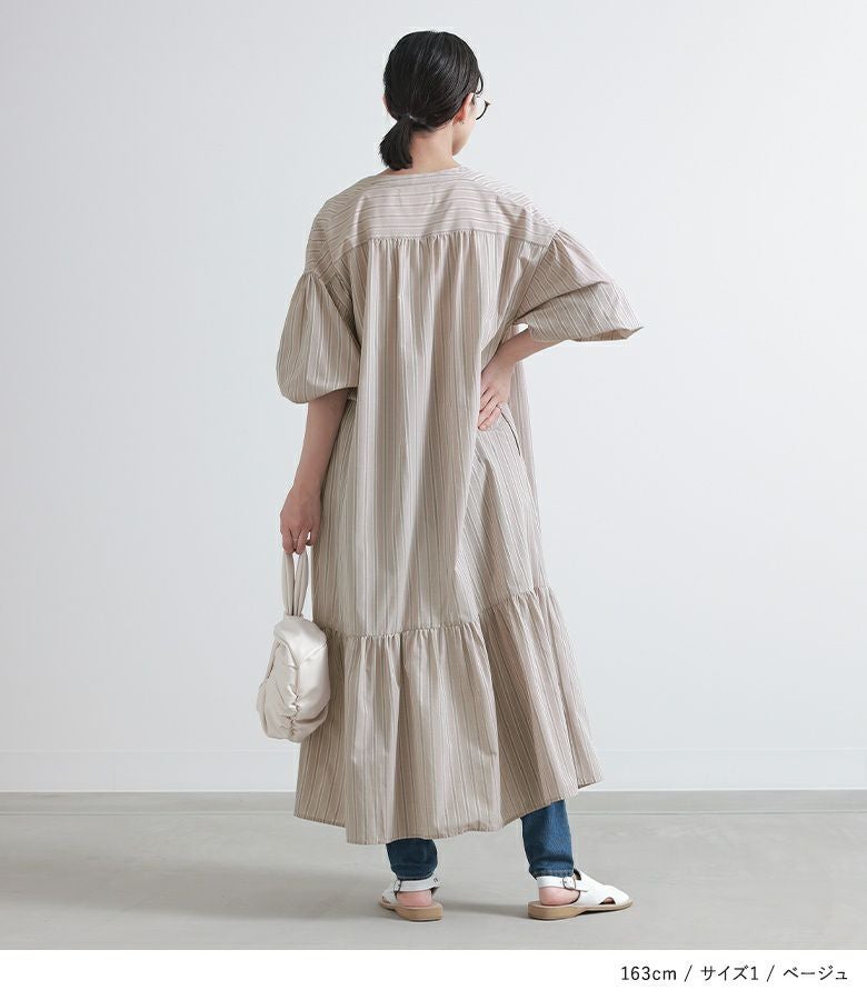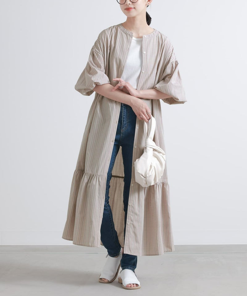 一枚でワンピースとして着て、ティアードシルエットが引き立つお洒落が完成。ボタンを外して羽織としてさらっと着てもコーデの幅が広がります。