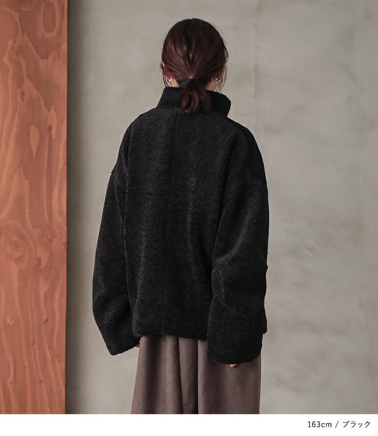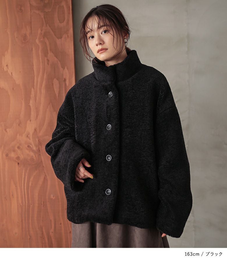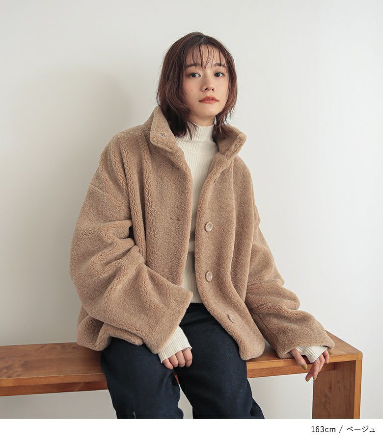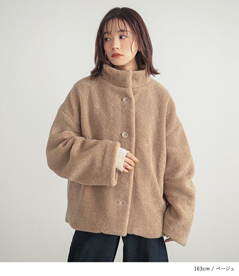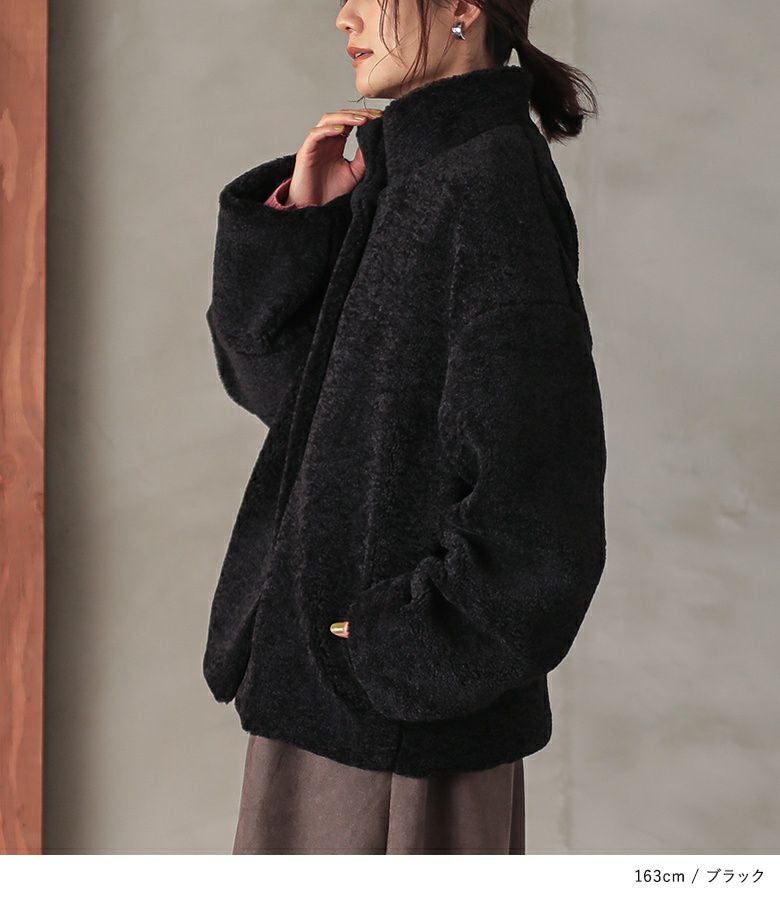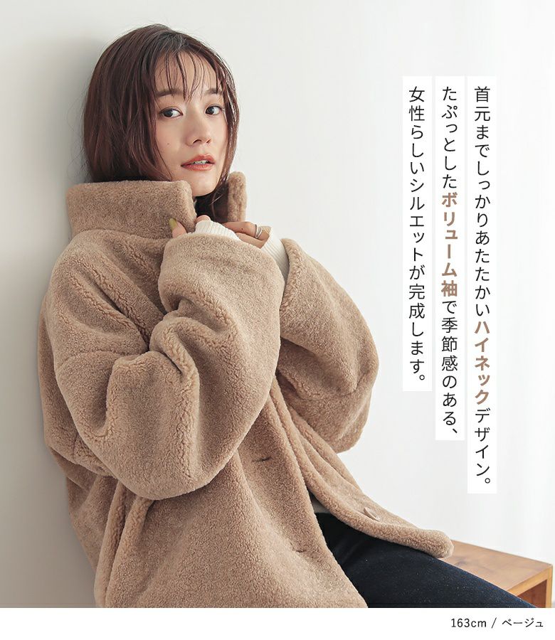 タックで立体的に仕上げたボリューム袖が目を惹くボアブルゾン。