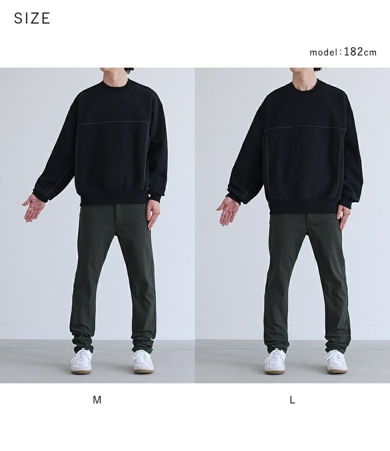 【普段着用】 Tops: L Bottoms: L/LL | 【M】 袖丈:手首位 着丈:ヒップにかかる位 腕周り:ややゆったり バスト:ジャスト 全体:ややゆったり