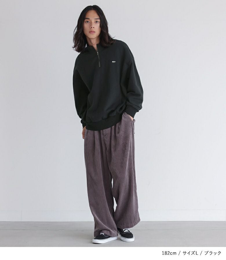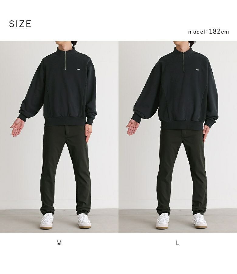 選べる2サイズ展開!ワンポイント刺繍がポイントの裏起毛ハーフジップトップス。