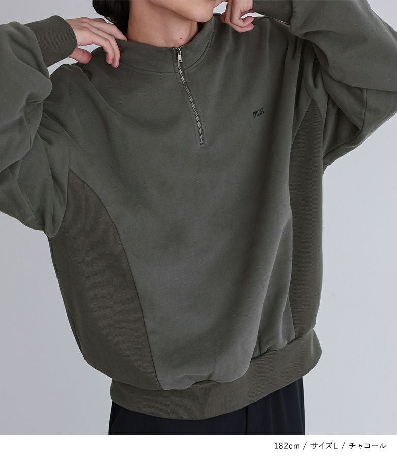 『n'OrLABEL裏起毛ハーフジップトップス』