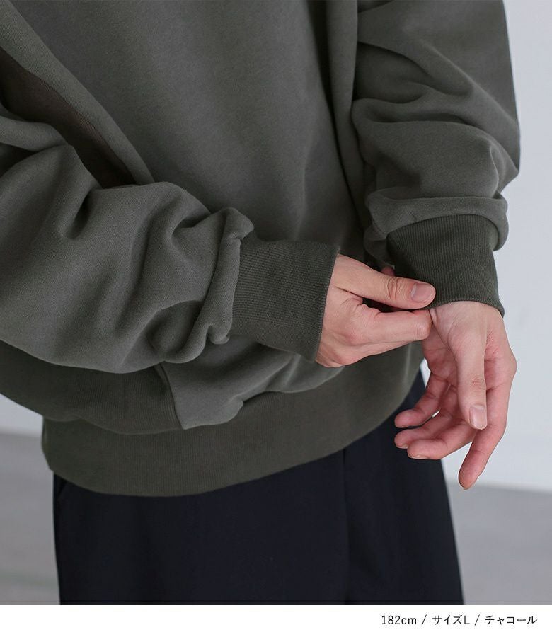 全体的にゆとりがありリラックスして着用することができました。袖はリブのため手首で止まります。