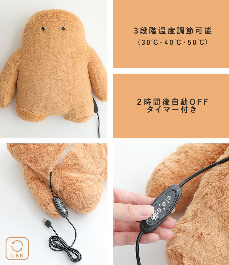 USB電源に繋ぐと、じんわりあったか。癒しのイエティクッション♪