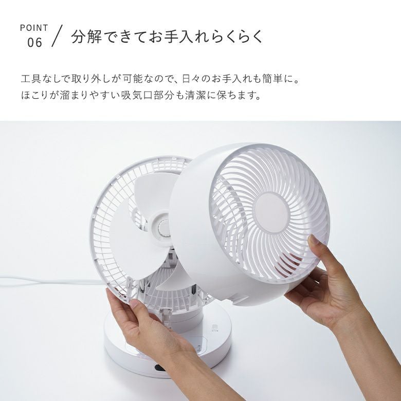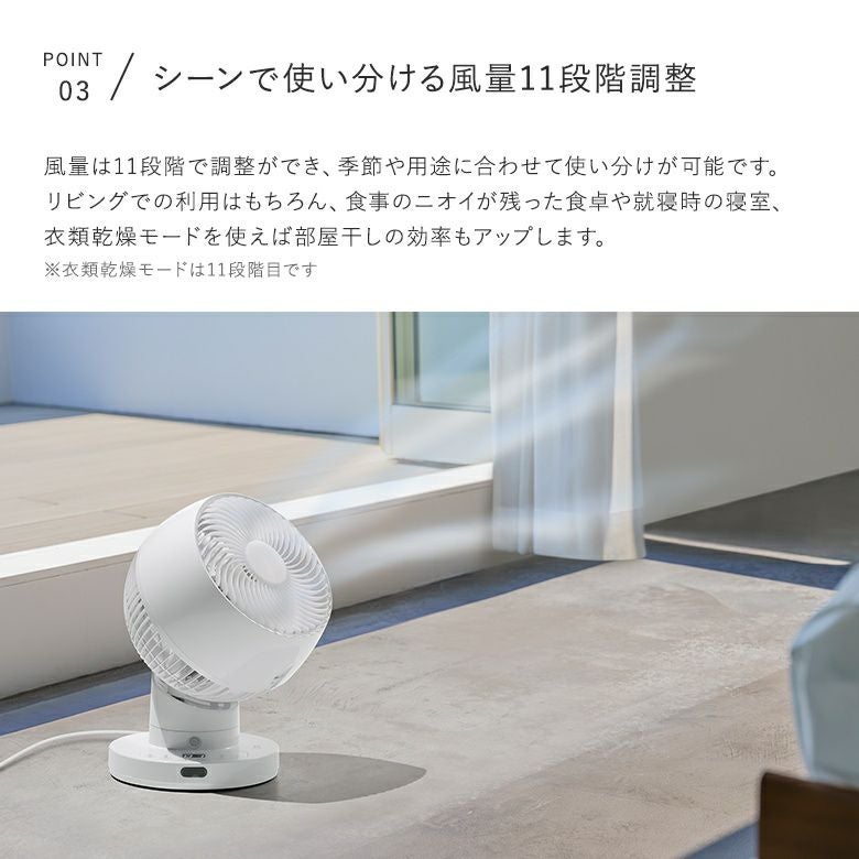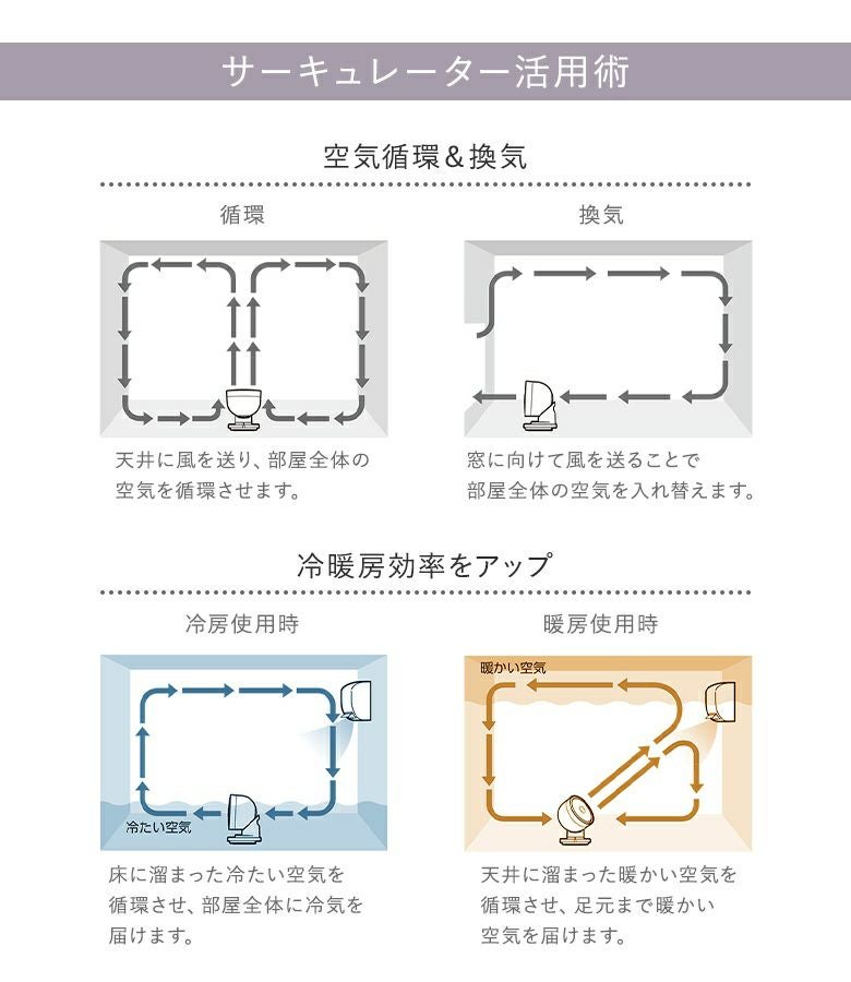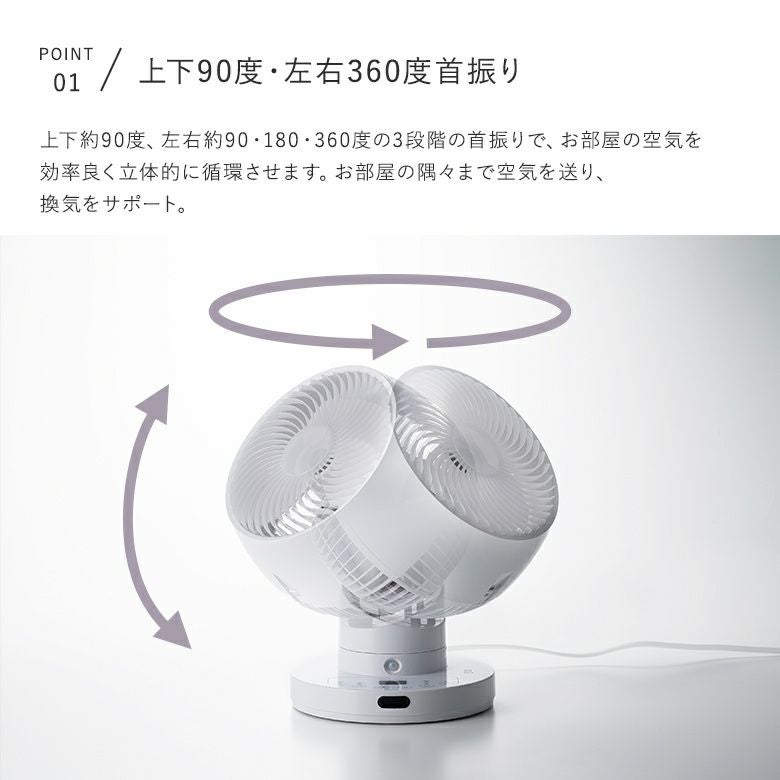 360度ぐるりと立体首振り。充実の機能性サーキュレーター。