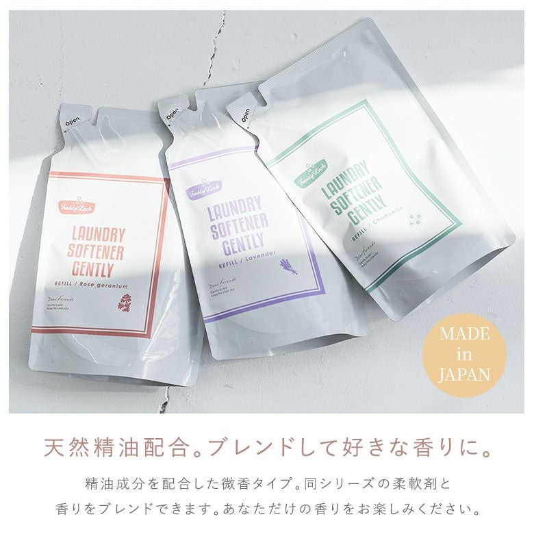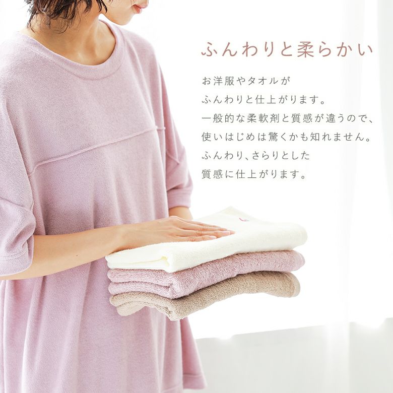 ジェントリーは食品・化粧品原料のみを使用。肌刺激が少なくてお子様や敏感肌の方も安心して使用可能!お洋服やタオルがふんわり、さらりとした質感に仕上がります。