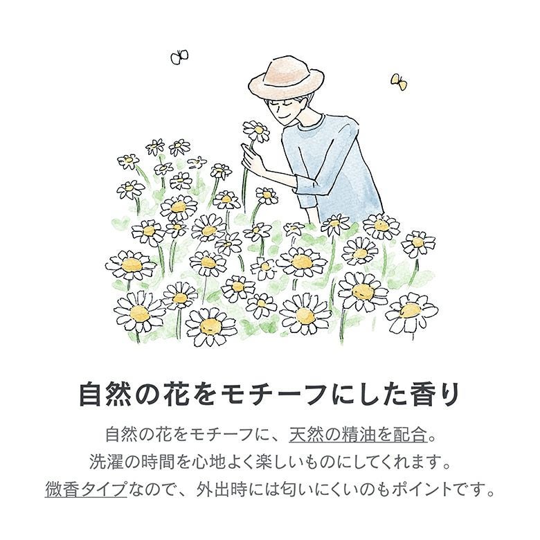 精油成分を配合した微香タイプ。同シリーズの柔軟剤と香りをブレンドできるのであなただけの香りをお楽しみください。