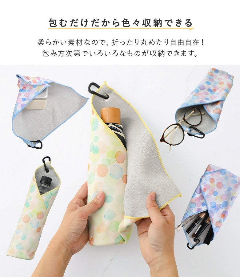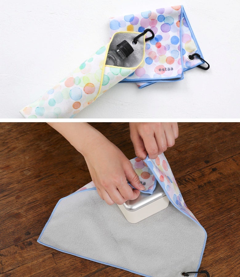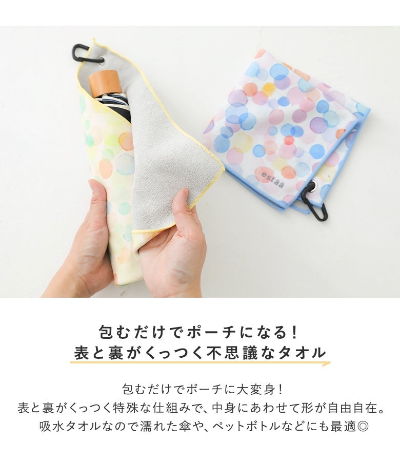 ぴたっとくっつく不思議なタオル、くっつきタオルカラフルドット。