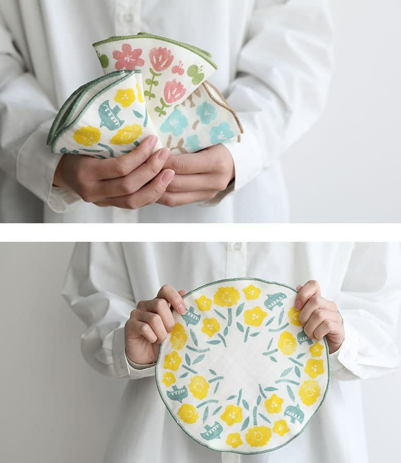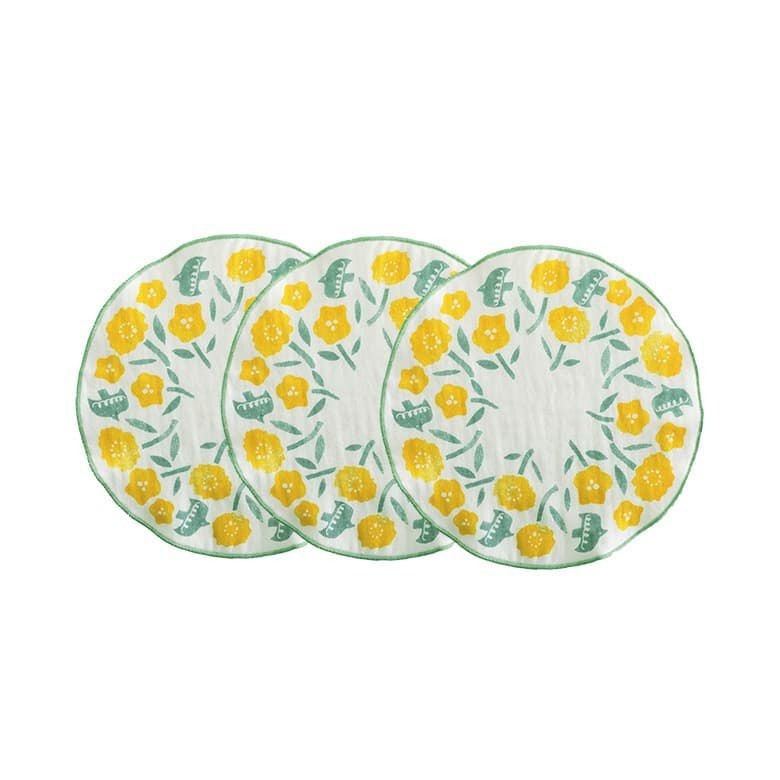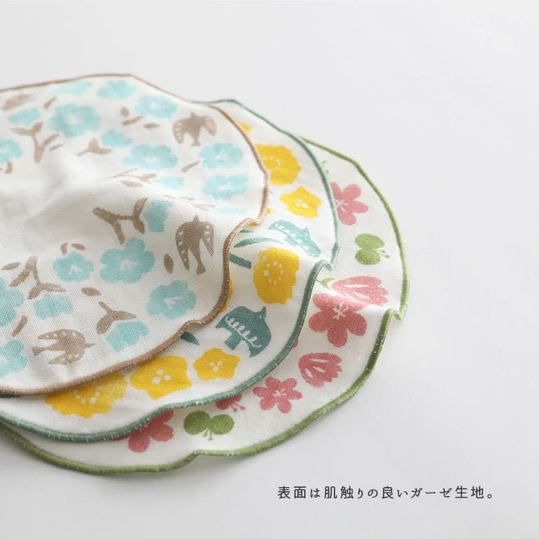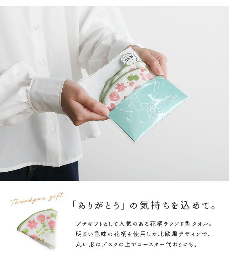 パッケージ入りでお配りギフトにもぴったり♪ラウンドおはなハンカチ3点セット。