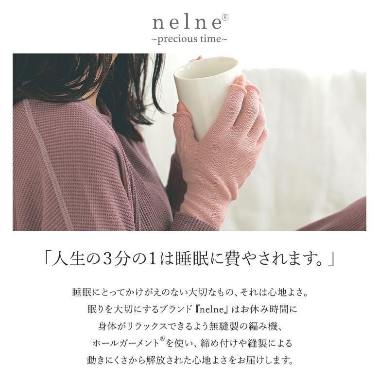 眠りを大切にするブランド『nelne』はお休みの時間に身体がリラックスできるよう無裁縫の編み機、ホールガーメントを使い、締め付けや裁縫による動きにくさから解放された心地よさをお届けします。