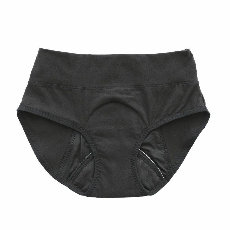 漏れのないようフィット感はありながらも締め付け感は強すぎず、股上がしっかりあるのでお腹が冷えないのが魅力的。メッシュ生地に、吸水生地と防水生地を重ねた4層構造が、経血を吸水してくれる優れモノです。