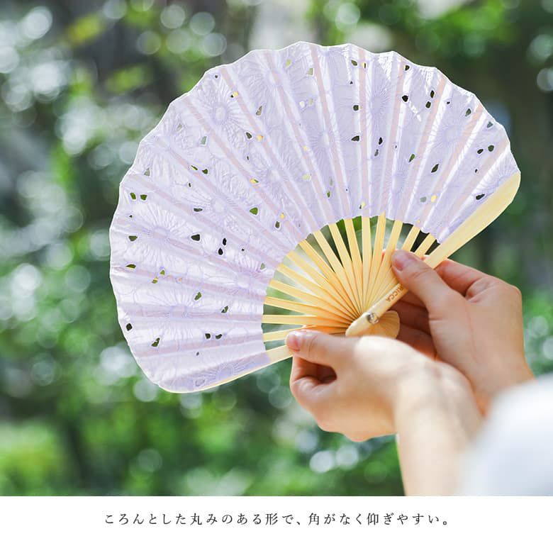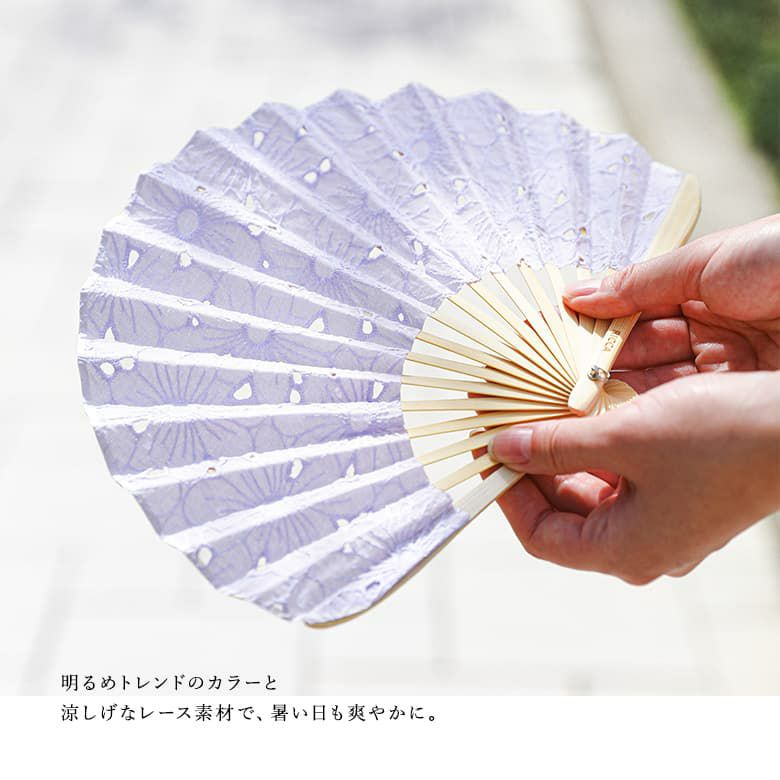 持ち歩きにぴったり♪レースが涼しげ。メロー扇子。