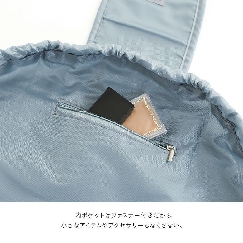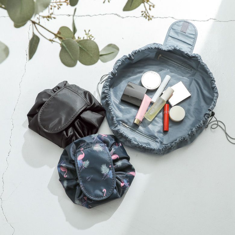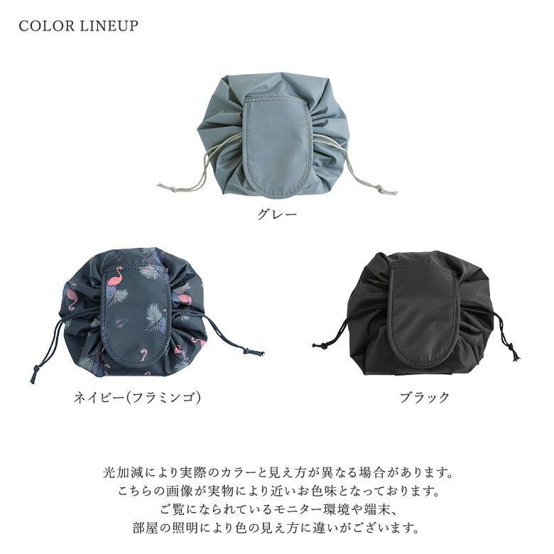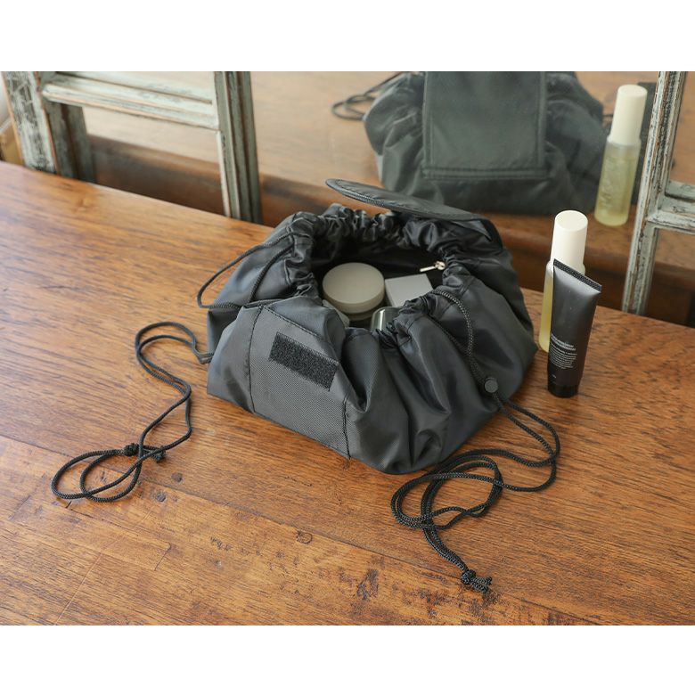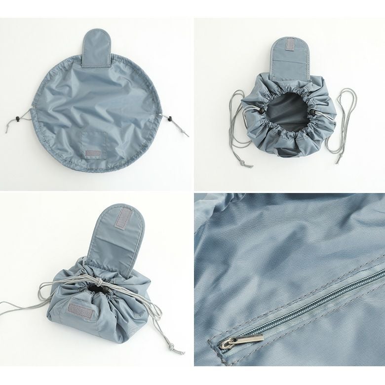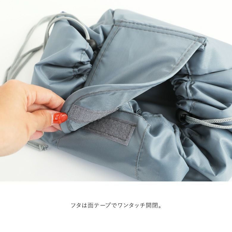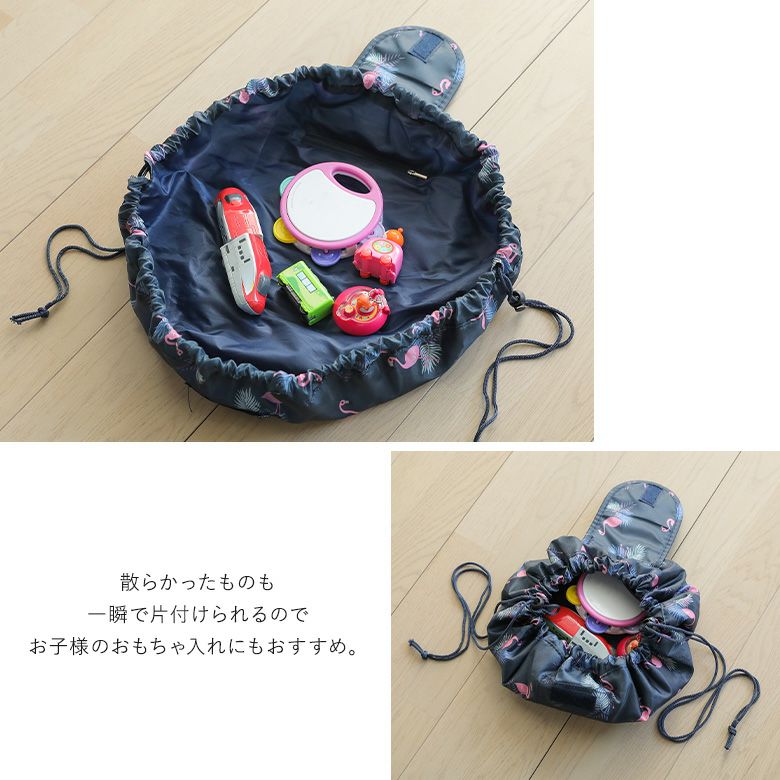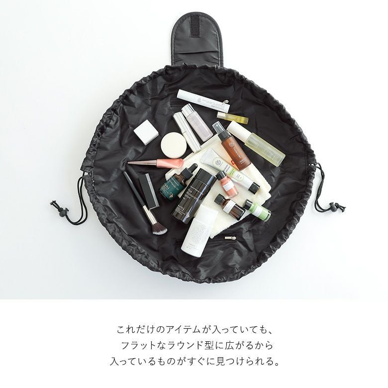 フラットになるから中身が見やすく、紐を絞るだけで簡単収納!