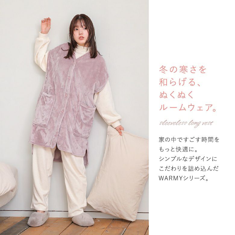 他の画像を見る 【30%OFF】寒い冬のおうち時間に。あったか袖なしショート丈ベスト。 『WARMYルームベスト』※返品交換不可※【メール便不可】【40】 定価 ¥ 4,290 のところ ¥ 3,003 税込 販売期間 2025/12/05 0:00 〜 2025/12/11 23:59 (0)