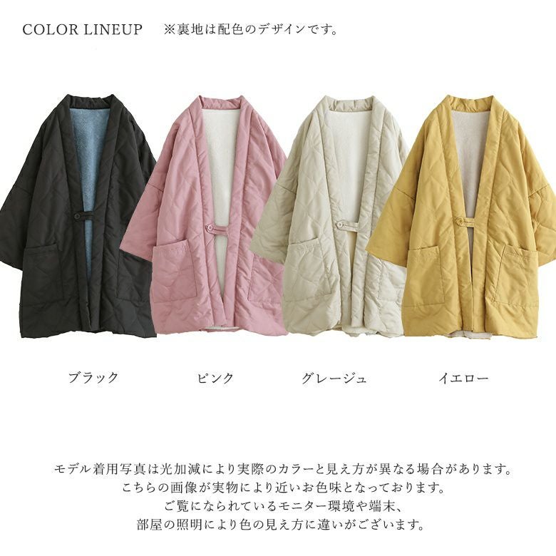 裏シャギーで羽織ってあったかな防寒キルティングはんてん♪