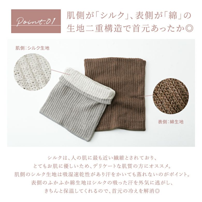『シルク&コットン二重編みネックウォーマー』