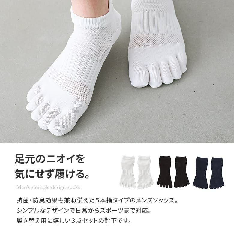 ニオイを抑え、清潔さを保つ5本指ソックス。3足セット。