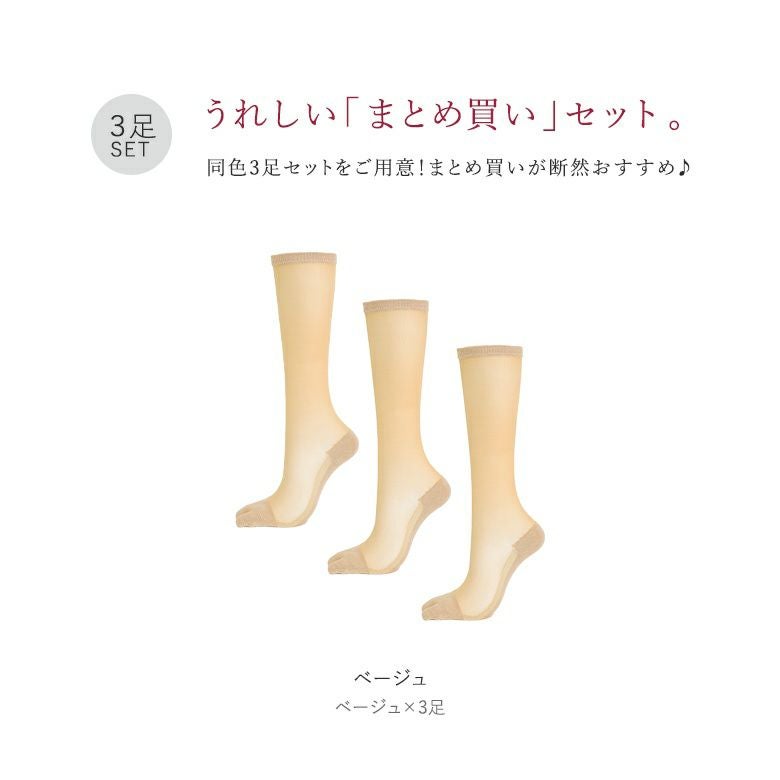 自然な素肌感を演出。足袋タイプのハイソックス3点セット♪