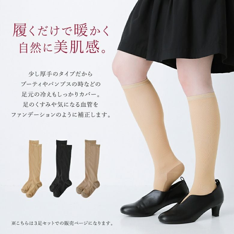 あたたかく自然な美肌感を演出する、少し厚手のハイソックス3点セット♪