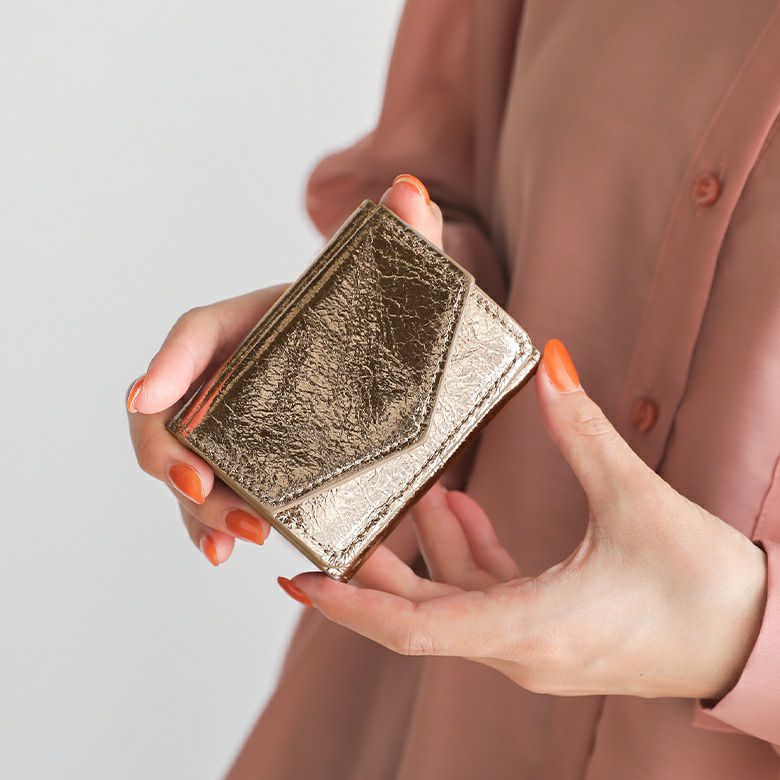今の気分にちょうどいい♪手のひらサイズのメタリック三つ折り財布。