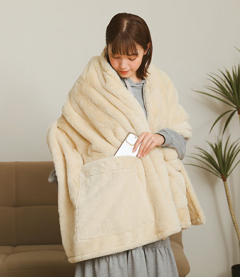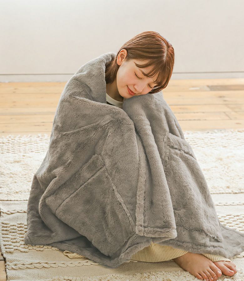 やみつきになる肌触り♪大きめポケット付きブランケット。