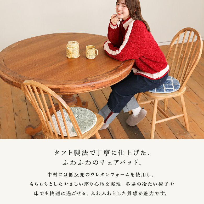 やさしい色合いと心地よさを兼ね備えたウェーブタフトチェアパッド。