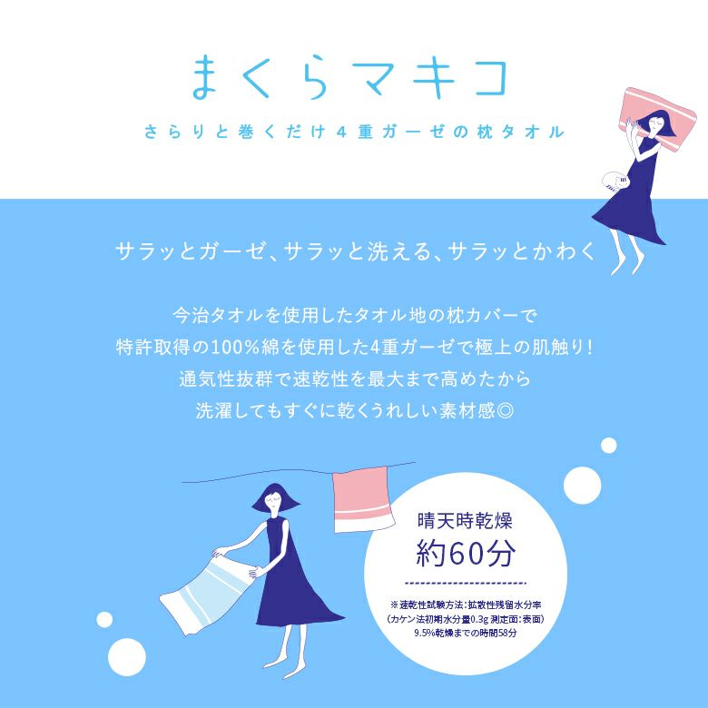 さらりと巻くだけ4重ガーゼの枕タオル、まくらマキコです。