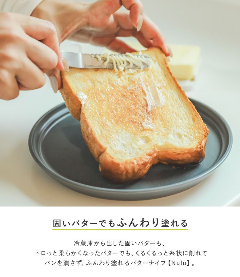 固いバターを糸状に、ふんわり塗れるNulu(ヌル)バターナイフ。