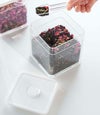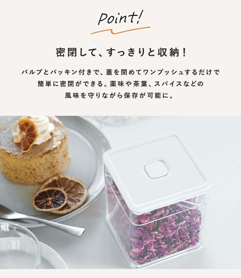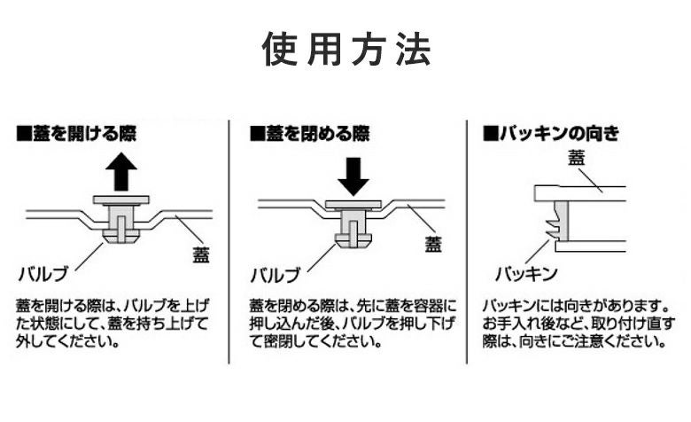 バルブを押すだけで簡単に密閉できる保存容器。