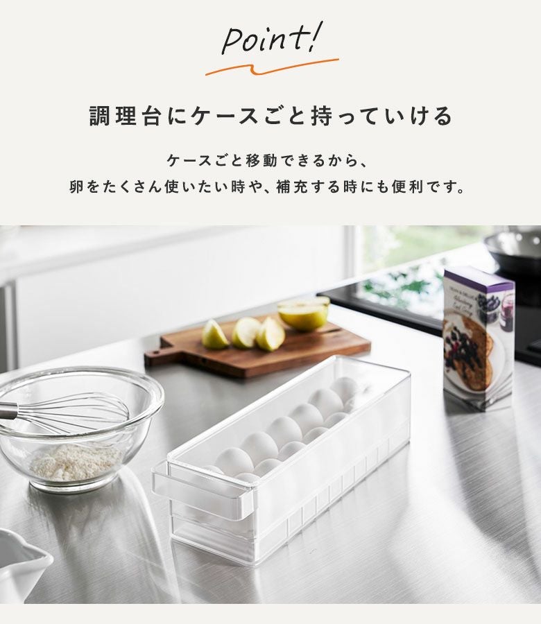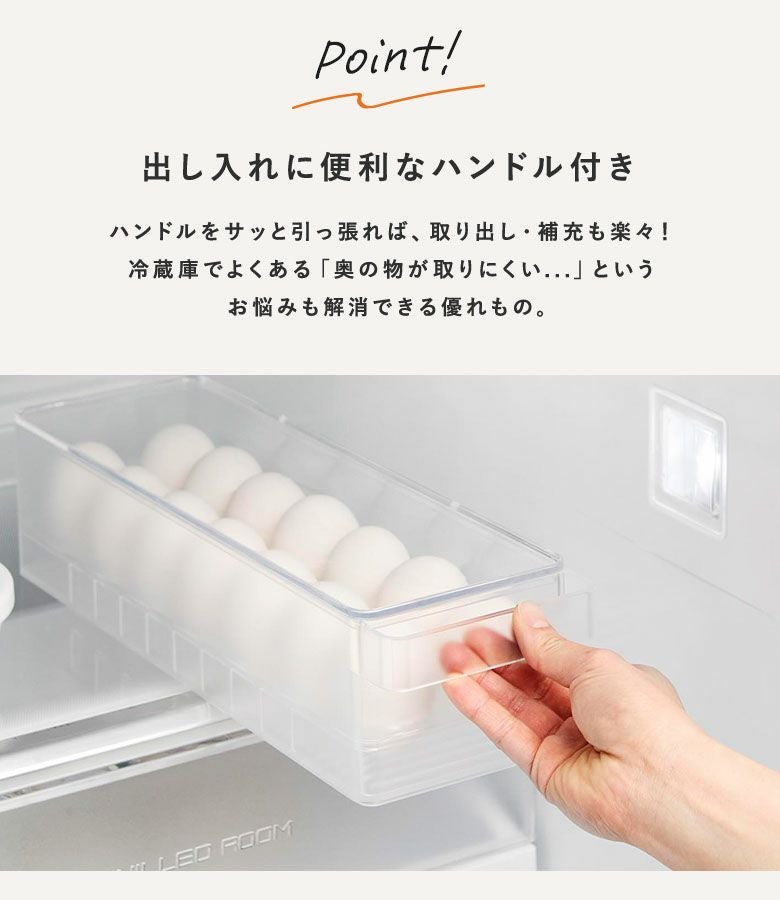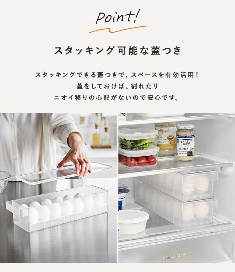 冷蔵庫の奥まで無駄なく活用できる、ロングサイズの卵入れ。
