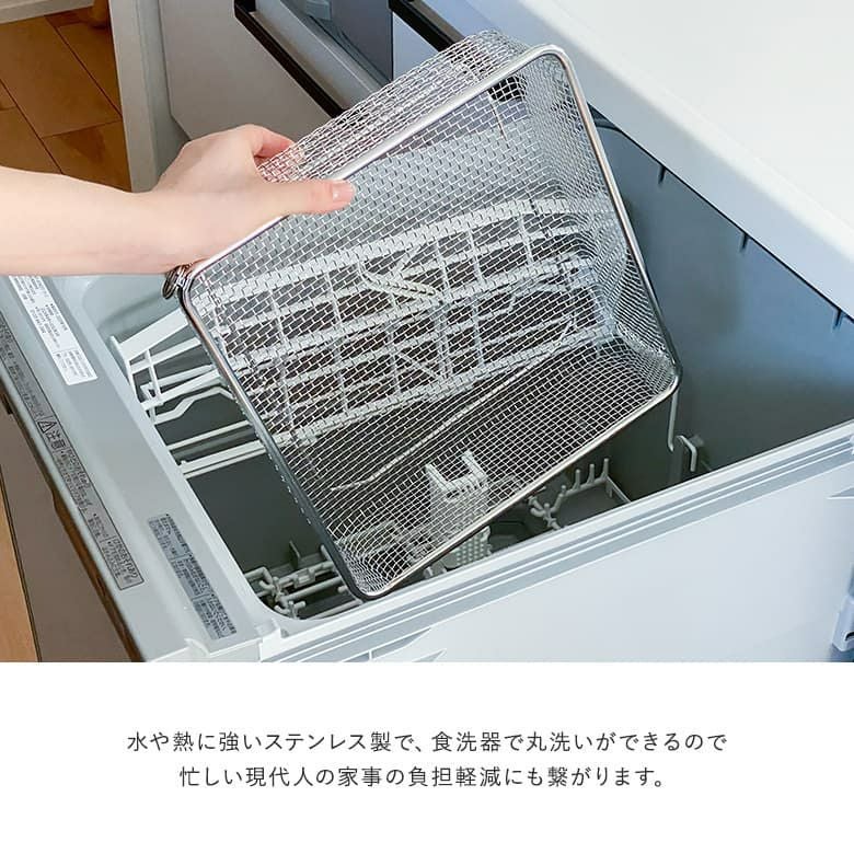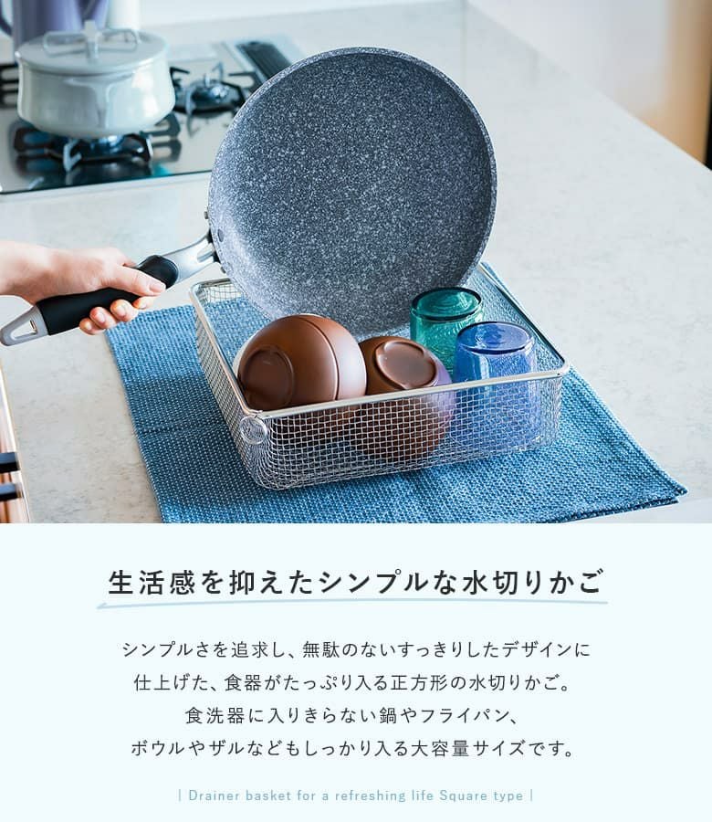 食器がたっぷり入る正方形の水切りかご。
