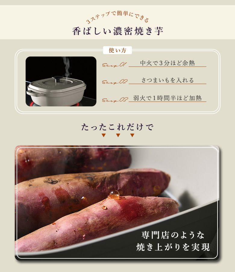 本格石焼き芋が手軽に楽しめる石焼き鍋。