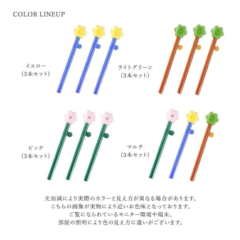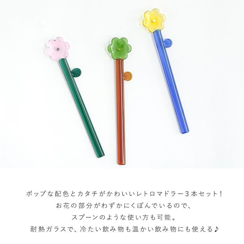 ポップな配色と可愛いカタチ♪フラワーマドラー3本セット。