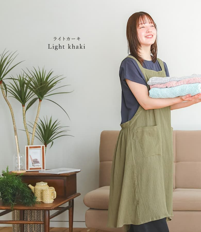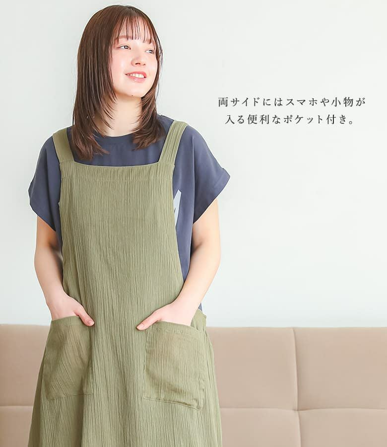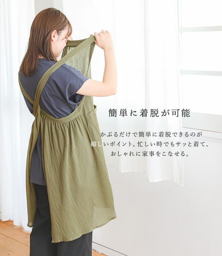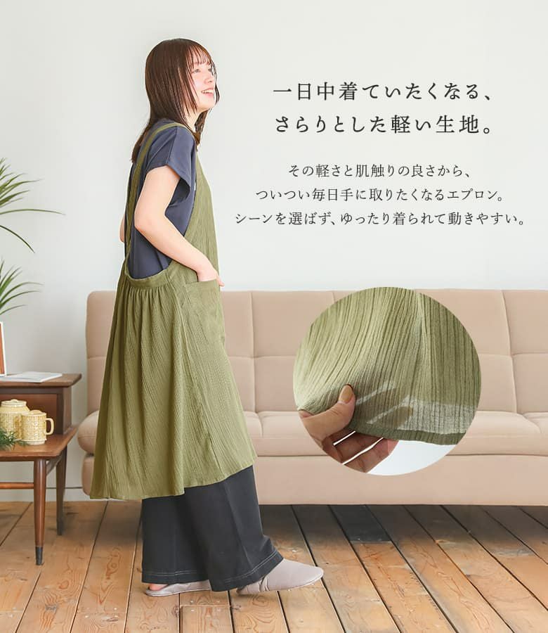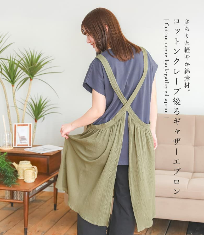 『コットンクレープ後ろギャザーエプロン』