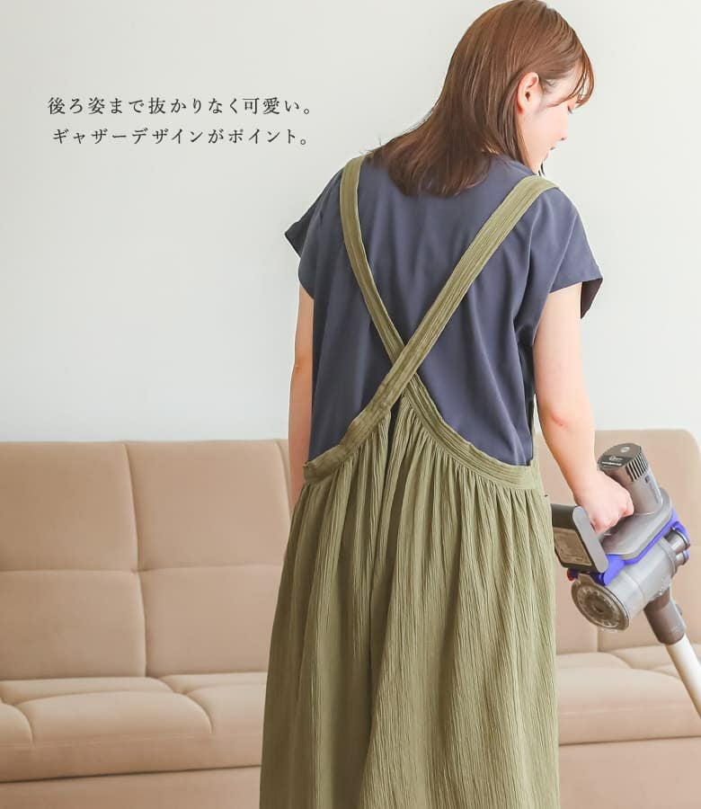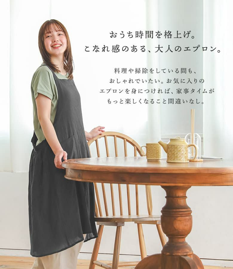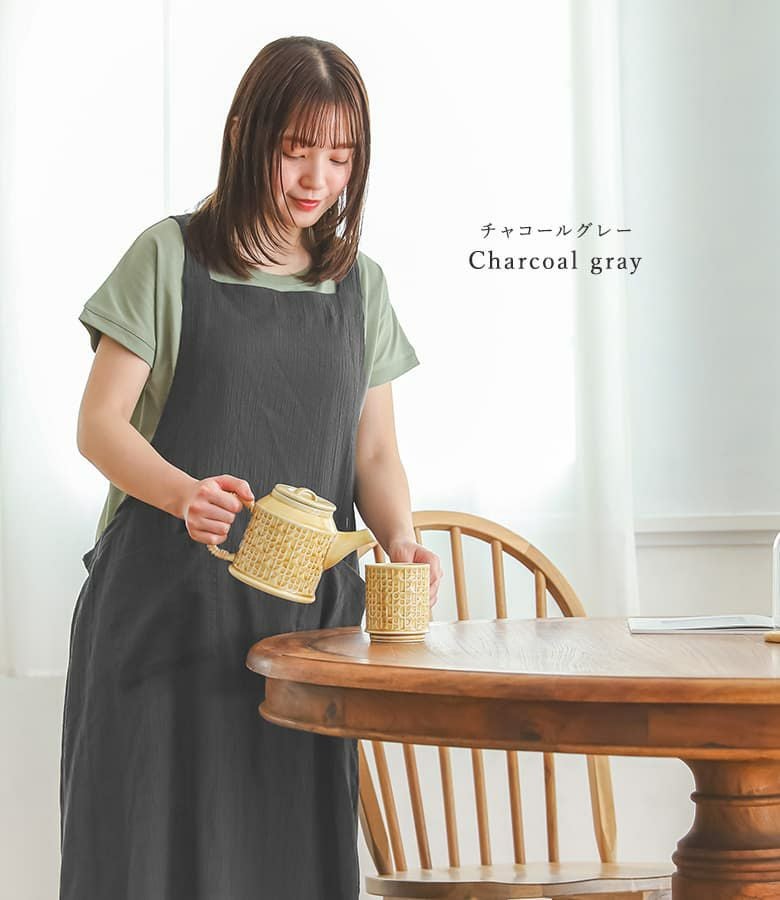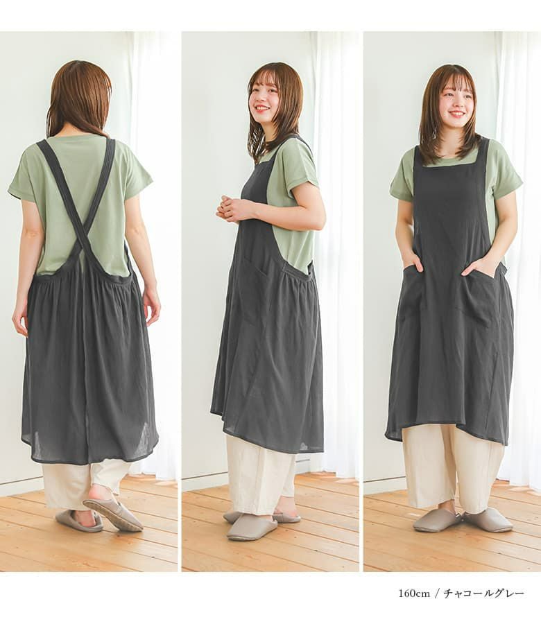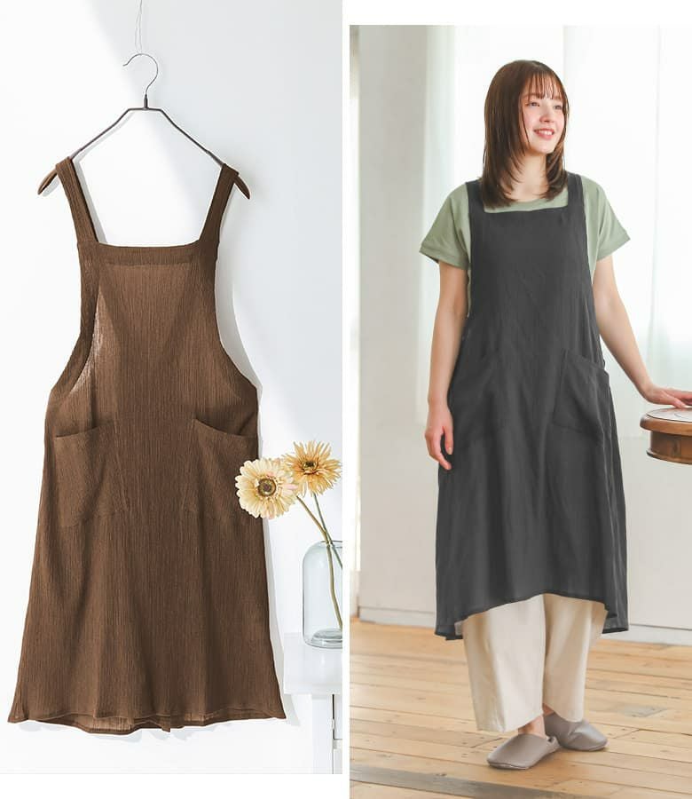 『コットンクレープ後ろギャザーエプロン』
