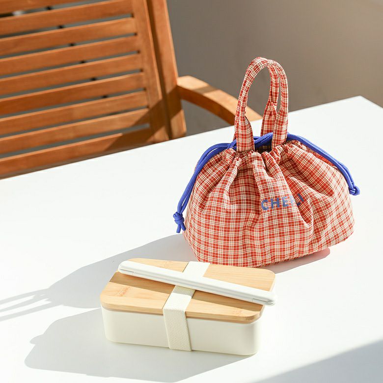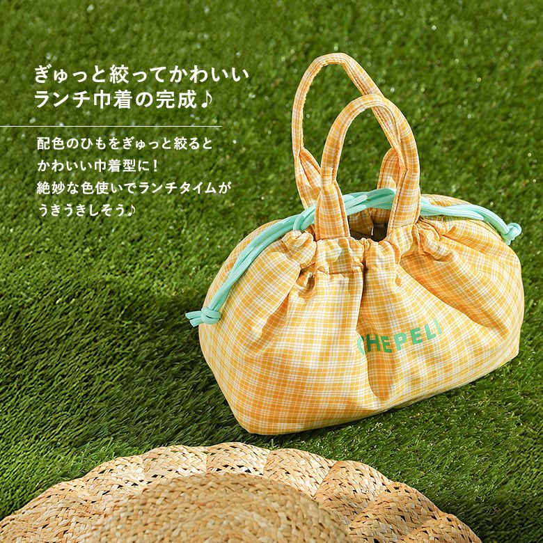 カラフルなチャック柄で気分も上がる、保冷ランチ巾着♪