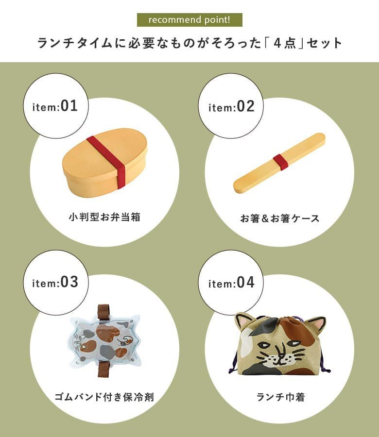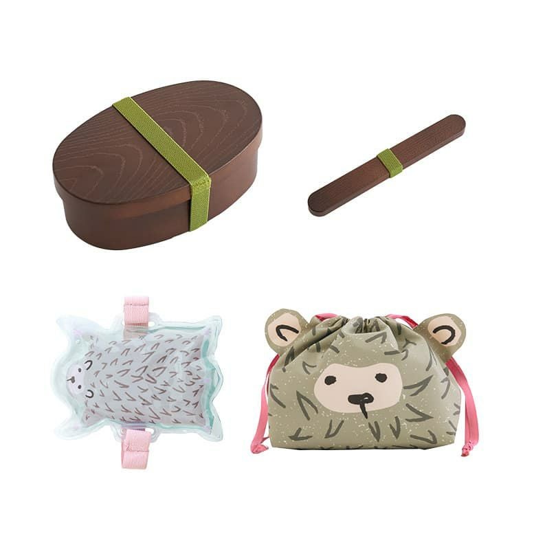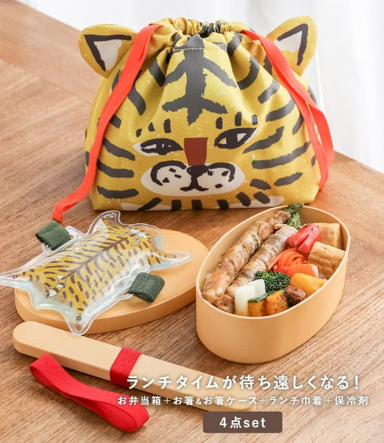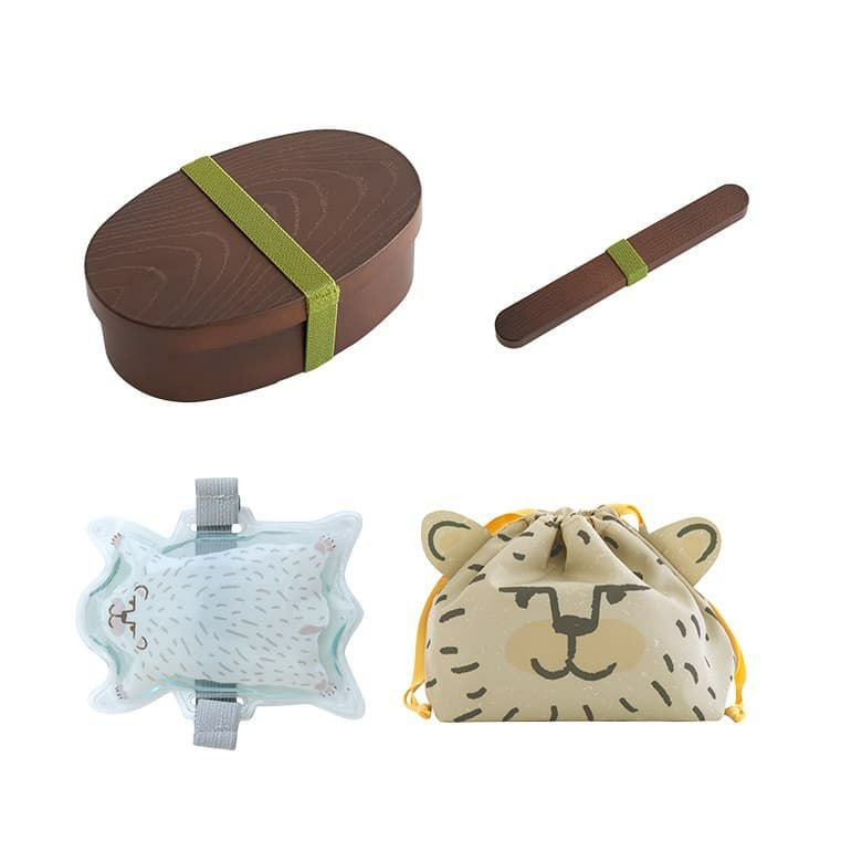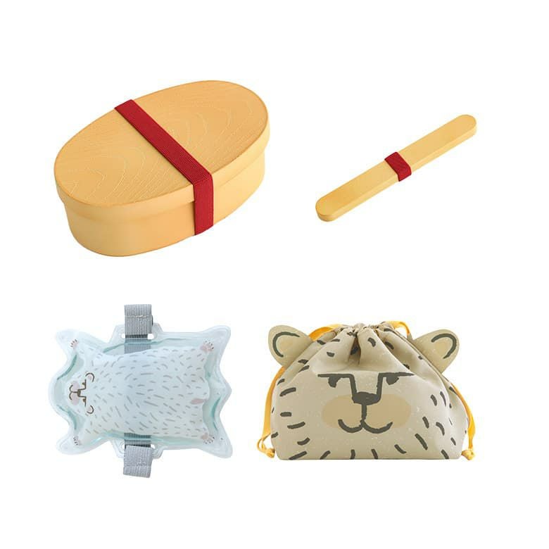 わっぱ風小判型お弁当箱&アニマルがかわいい♪ランチ4点セット。