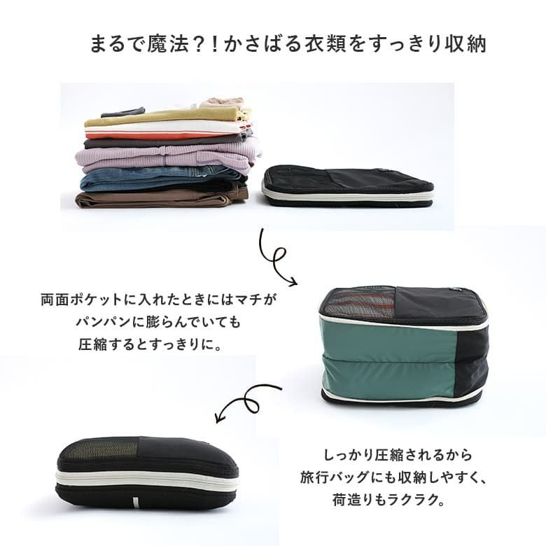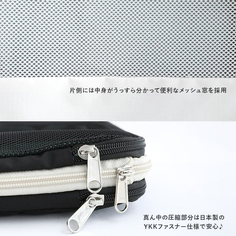 ファスナーでギュっと圧縮できて便利!トラベル圧縮ポーチM