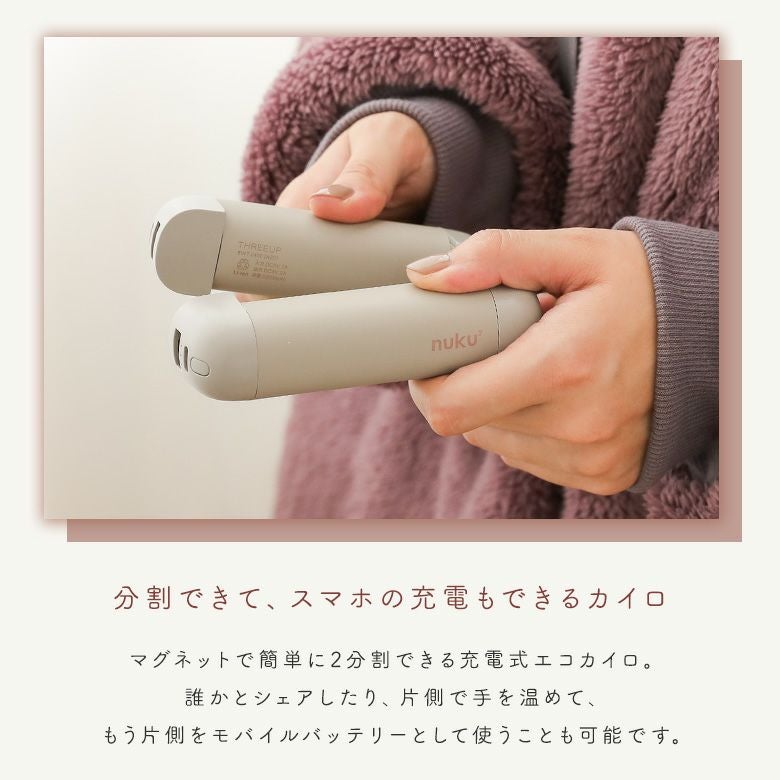 ぬくもりをおすそわけできて、モバイルバッテリーにもなる。充電式ペアカイロ♪