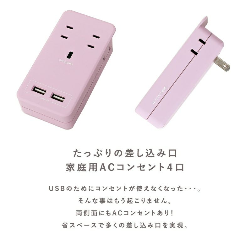 『SATICOLOR AC4個口USB2ポート4.2A』