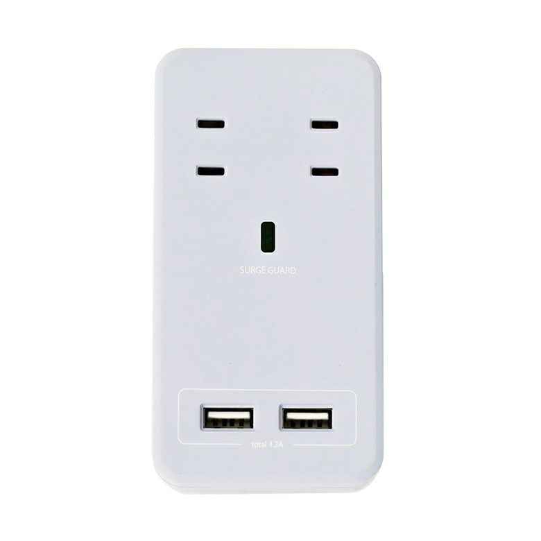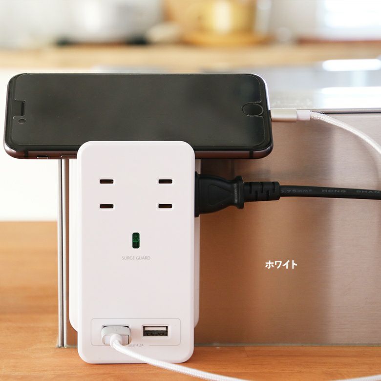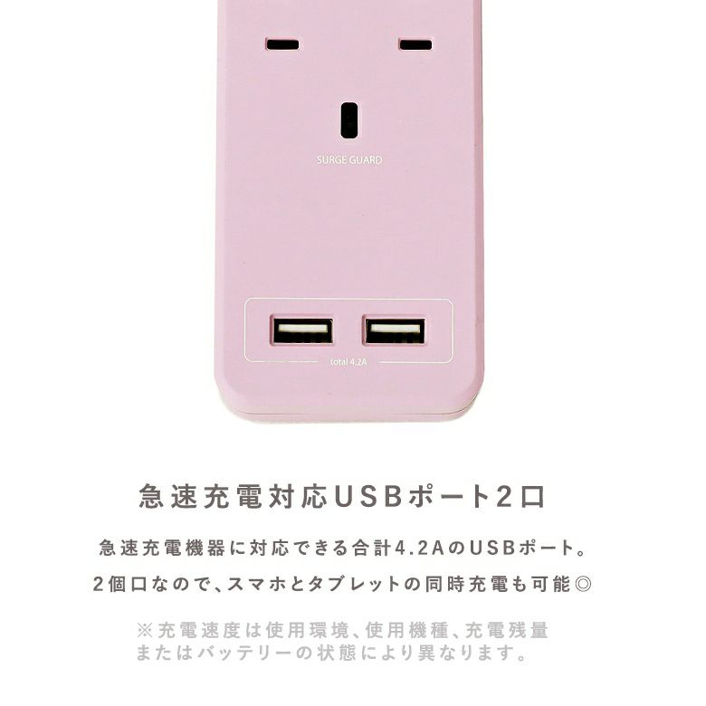 急速充電器に対応できる、合計4.2AのUSBポートはスマホとタブレットの2台同時充電も可能。