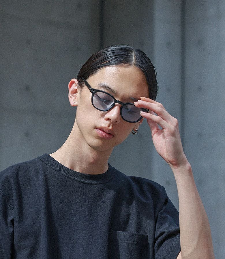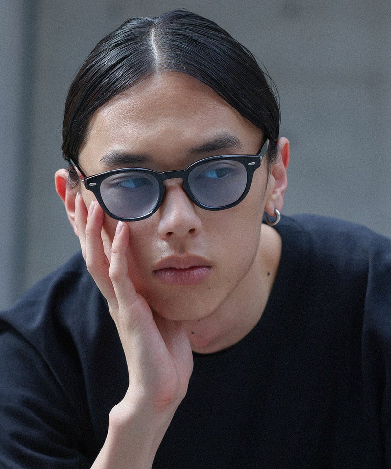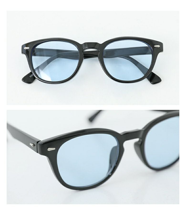 透け感のあるブルーのクリアレンズを使用したシンプルなサングラス。