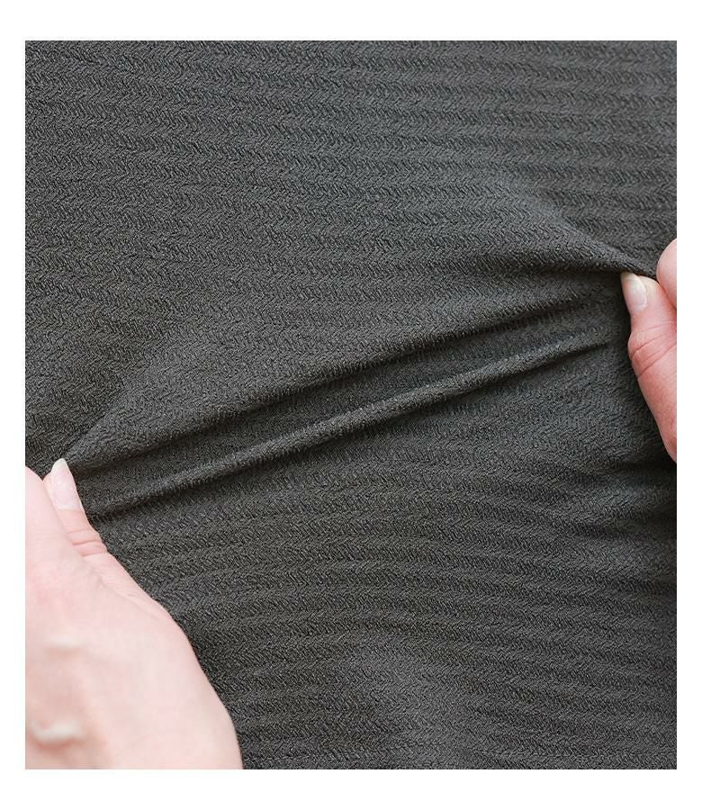 スッキリしたシルエットですが、素材が柔らかく楽に穿くことができました。ウエストはゴムで楽に穿け、腰で穿くとひざ丈くらいです。