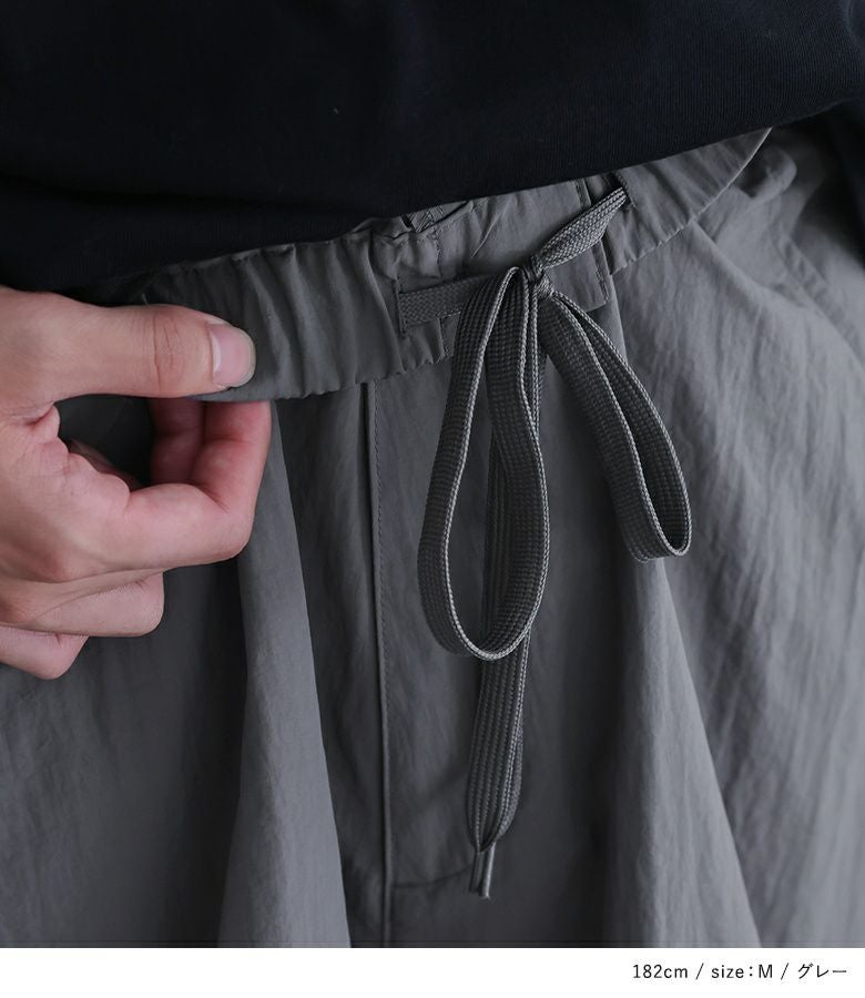 全体的にゆったりしていますが、ウエストをドローコードで調節できます。着丈はジャストでした。