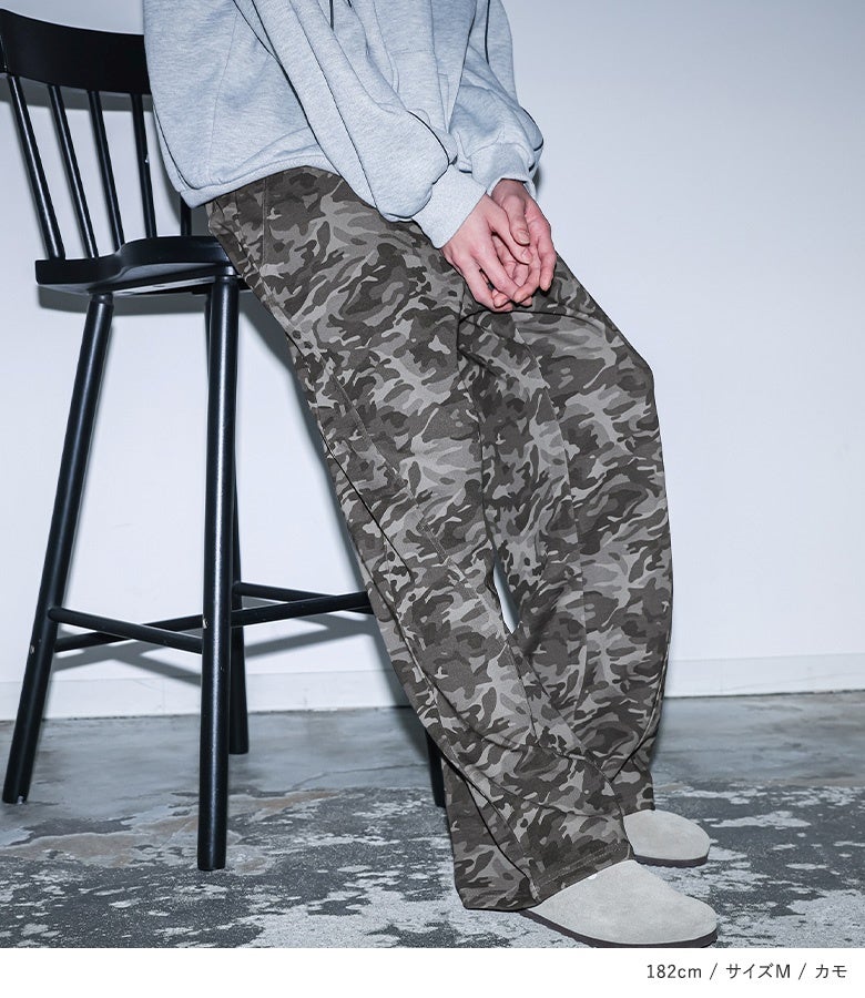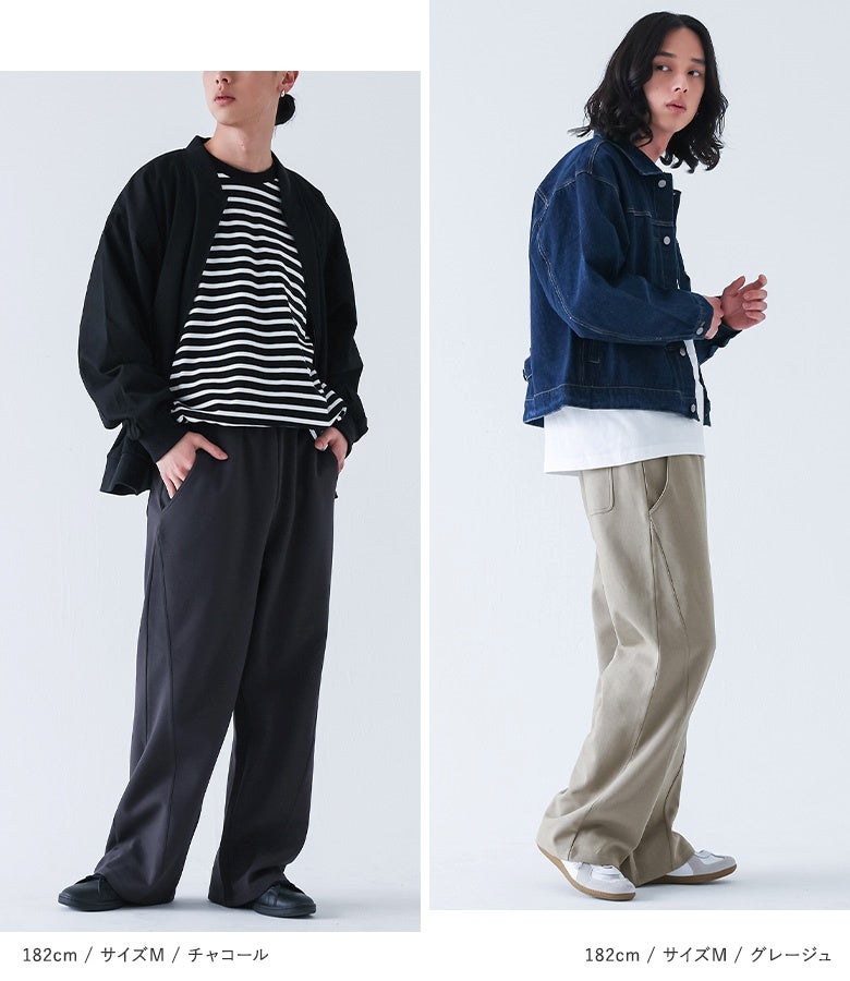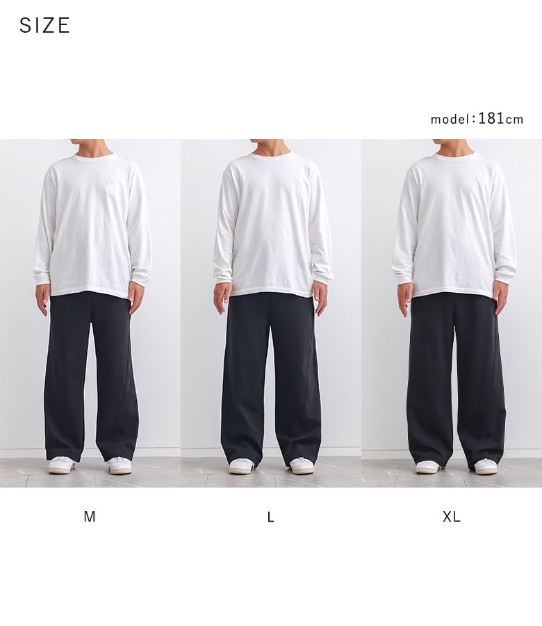 【普段着用】 Tops: L/LL Bottoms: L/LL | 【M】 着丈(ウエスト穿き):かかと上3cm位 ウエスト:ジャスト ヒップ:ジャスト 太もも周り:ややゆったり 全体:スッキリ