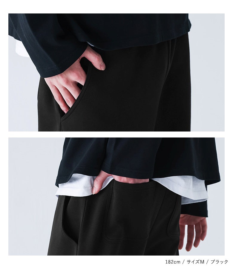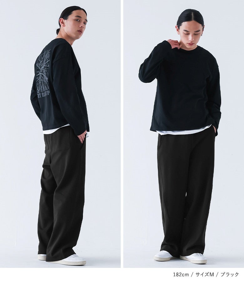 【普段着用】 Tops: L Bottoms: L/LL | 【M】 着丈(ウエスト穿き):かかと位 ウエスト:ややゆったり ヒップ:ややゆったり 太もも周り:ややゆったり 全体:ややゆったり